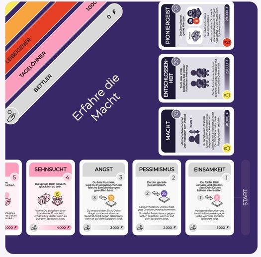 30 Feelings ist ein soziales Brettspiel, das Dich auf eine Reise durch das gesamte Spektrum menschlicher Emotionen mitnimmt. Zu Beginn des Spiels befindest Du Dich unten in der sozialen Hierarchie. Dein Ziel ist es, als erster den höchsten Rang zu erklimmen und Kaiser zu werden. Das ist ein spannender Weg. Um das zu schaffen, musst Du mit den anderen Spielern verhandeln, Beziehungen nutzen und verstehen, wie Gefühle miteinander wirken. 30 Feelings vereint Glück, Strategie, emotionale Intelligenz und Verhandlungsgeschick. Das Spiel ist perfekt für Jugendliche und Erwachsene, die sich trauen, mit Gefühlen Tabus zu brechen.